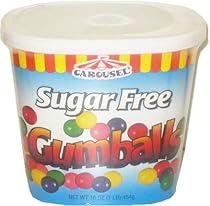 1/2" sugar free gumballs. Fits standard gumball machines. 16oz resealable carton.